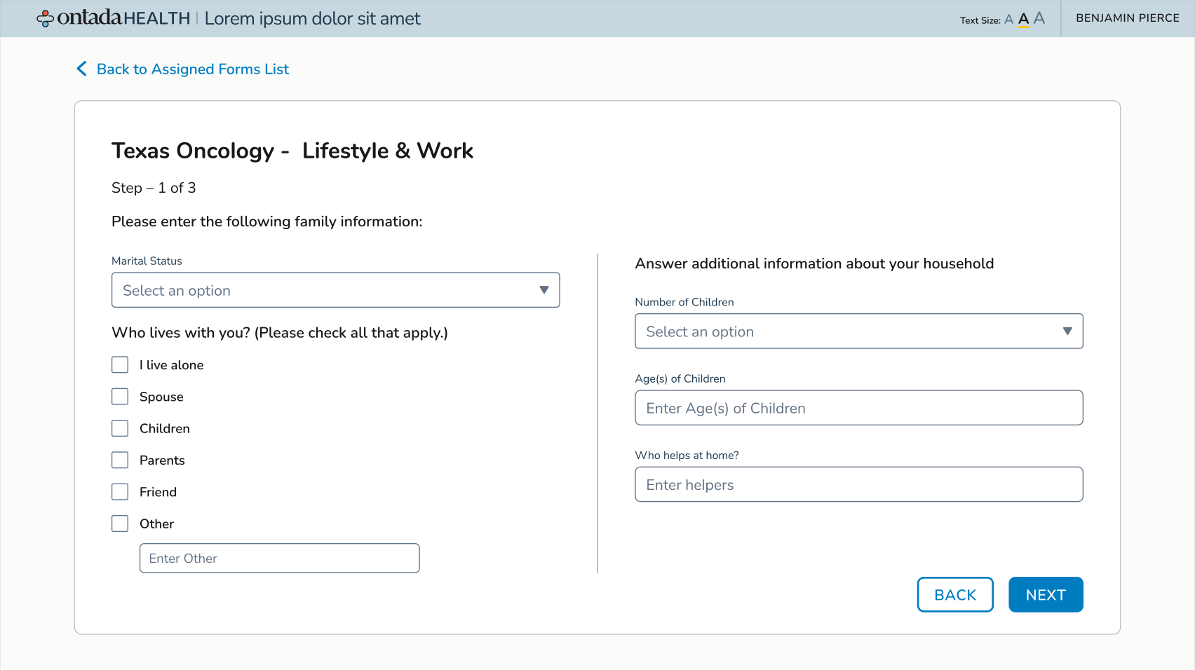 Led wireframing, prototyping, and UI design in Figma, with a focus on accessibility, clarity, and emotional reassurance for patients navigating cancer care.